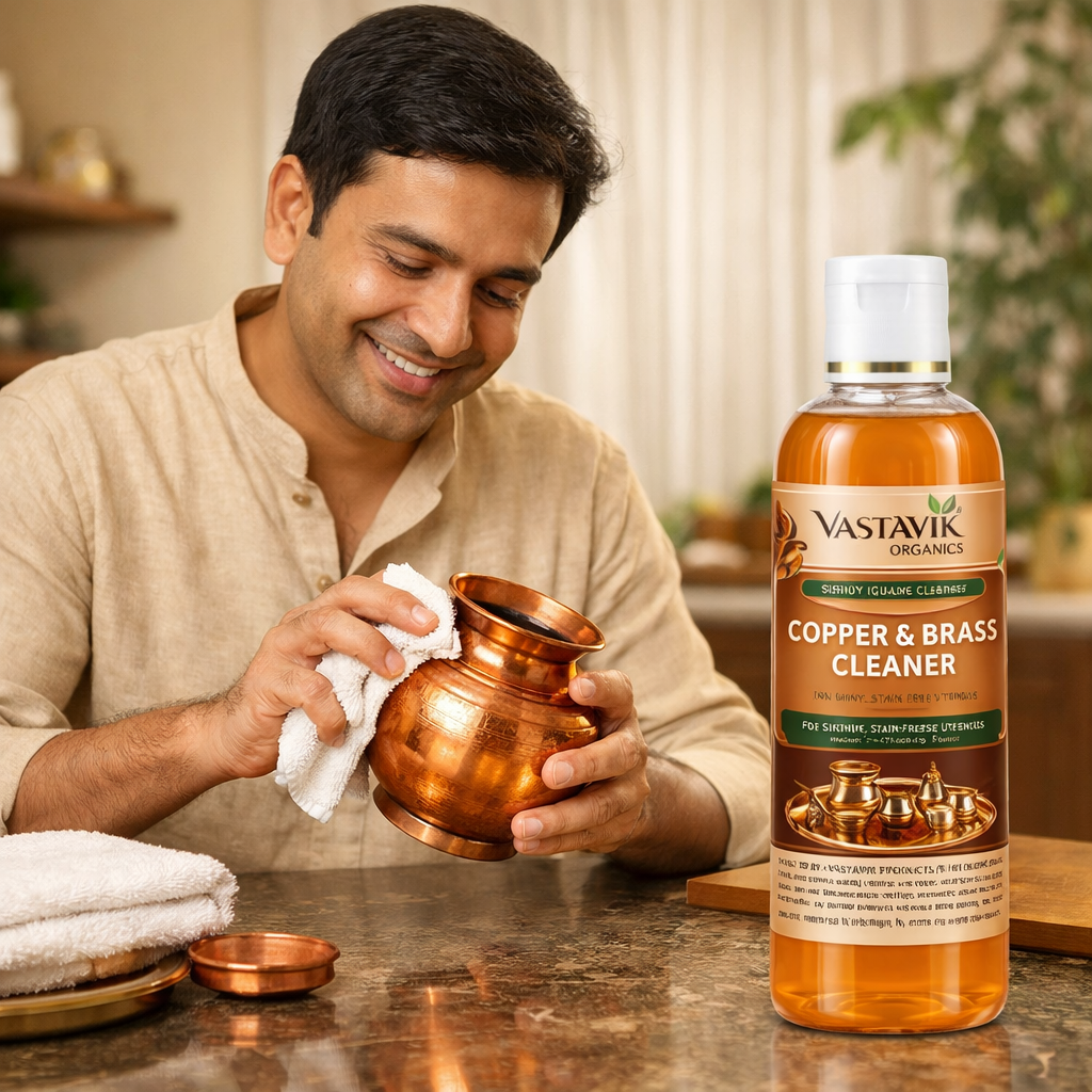 Vastavik blends tradition with convenience. Our copper cleaner liquid is crafted for households that respect heritage while embracing efficient, modern cleaning solutions. Whether it’s an heirloom copper lota or daily-use brass thali, Vastavik keeps them shining like new.